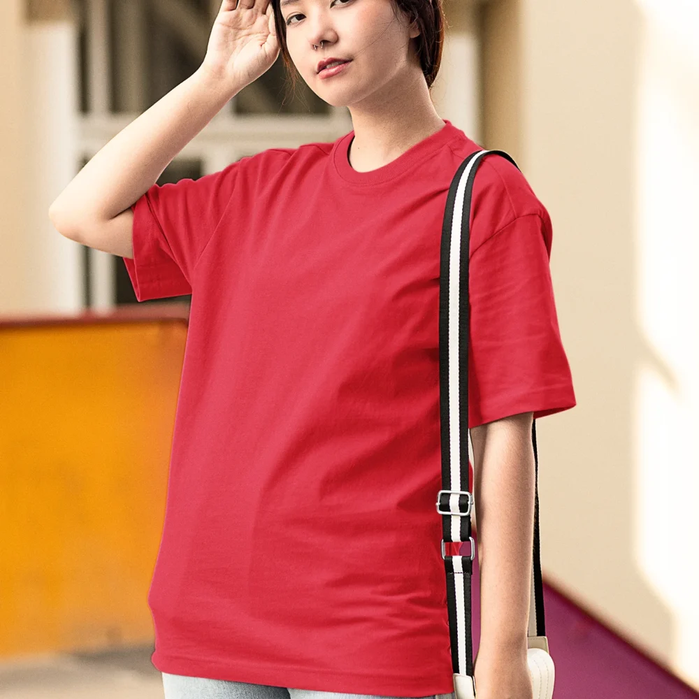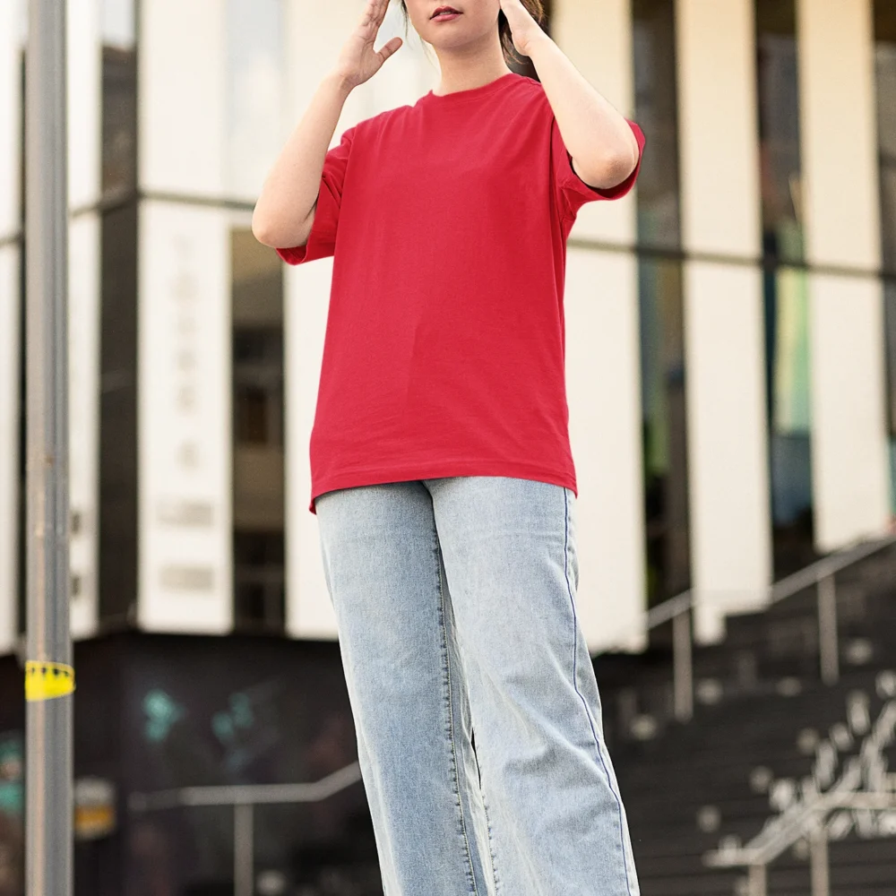 Red Oversized Drop Shoulder T-Shirt for Girls 100% Cotton | Biowash Soft Touch