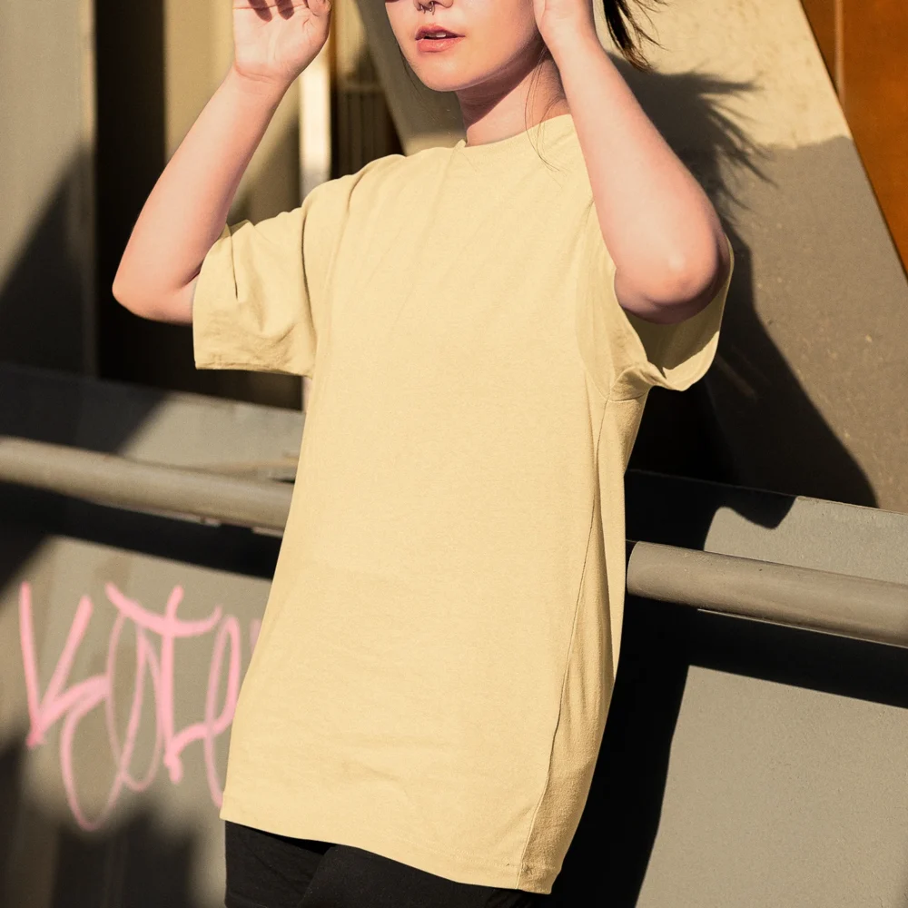 Girls’ Beige Oversized Drop Shoulder T-Shirt – 100% Cotton | Biowash Soft Fabric