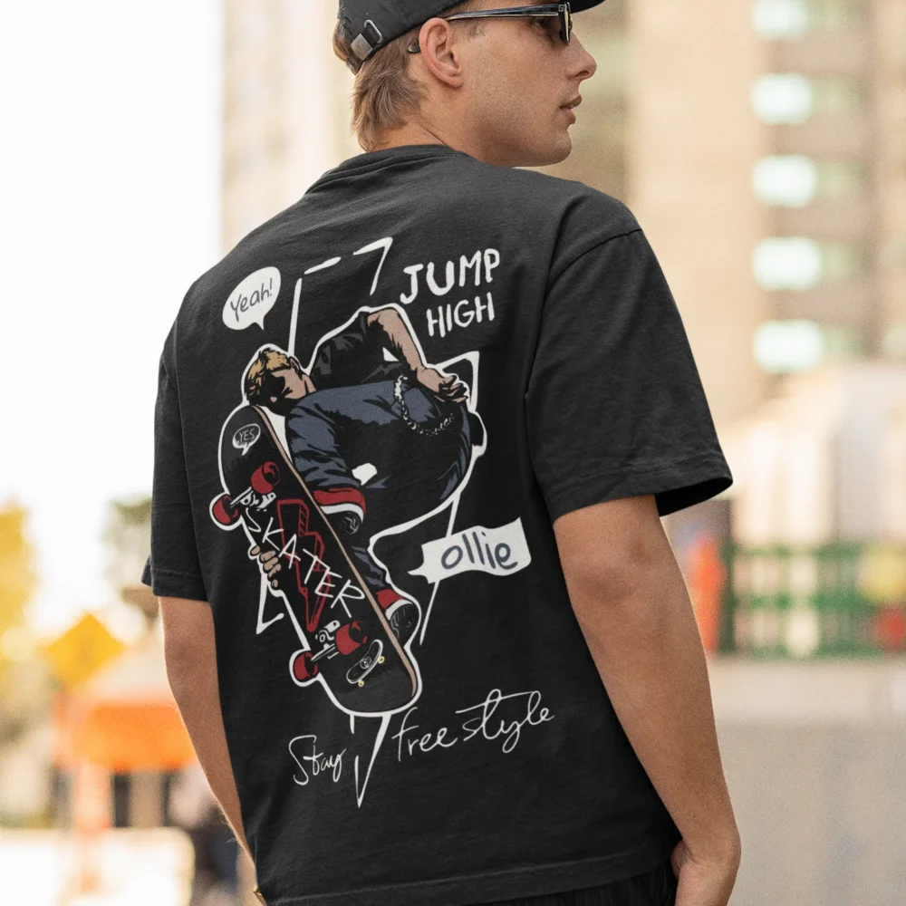 “Ollie Vibes” Oversized Skater Graphic T-Shirt – 210 GSM Bio-Wash Cotton