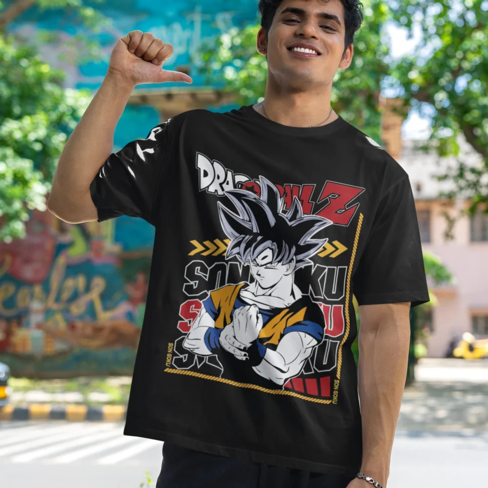 Son Goku Dragon Ball Z Oversized T-Shirt – 210 GSM Cotton | Black Anime Streetwear Tee