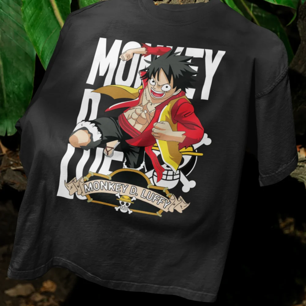 Monkey D. Luffy One Piece Oversized T-Shirt – Black 210 GSM Anime Streetwear