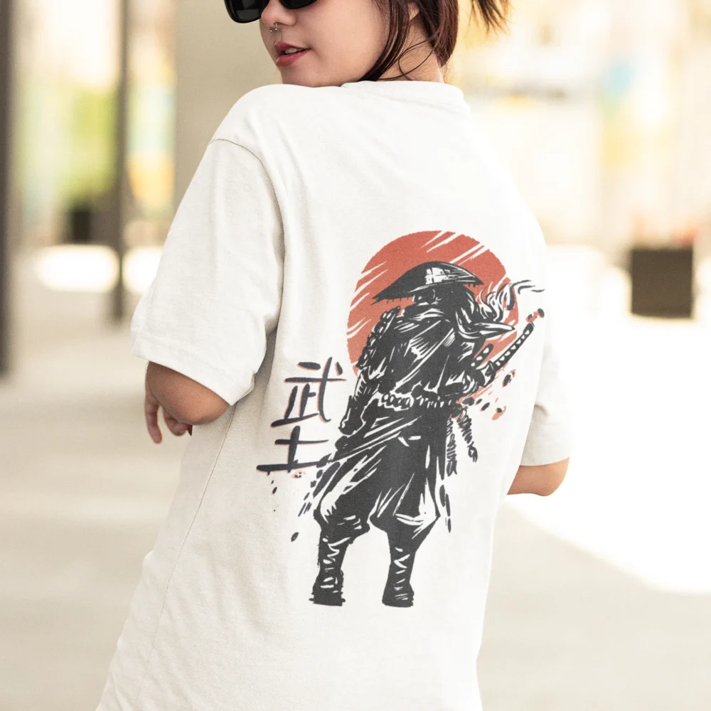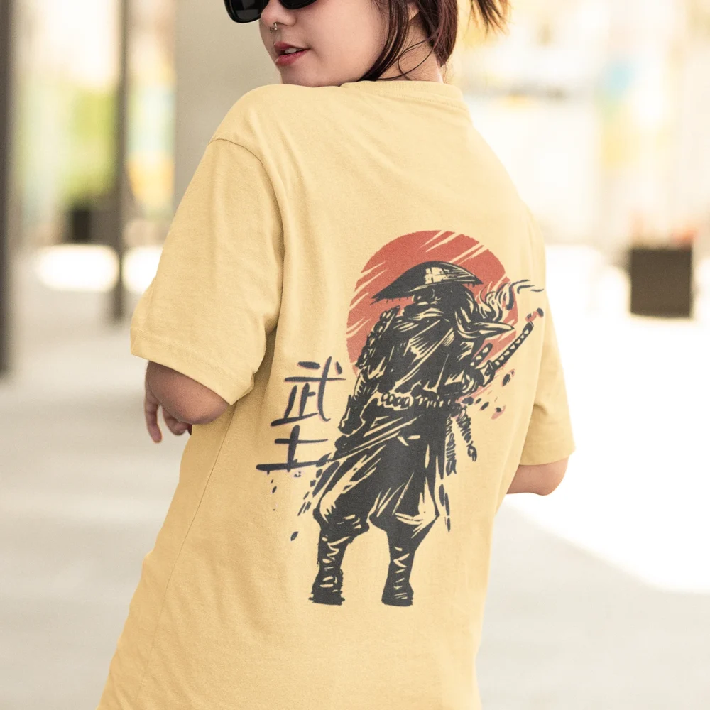 “Samurai Sunset” Oversized Drop Shoulder T-Shirt for Girls – 210 GSM | Bio-Wash Cotton