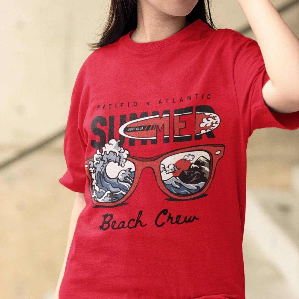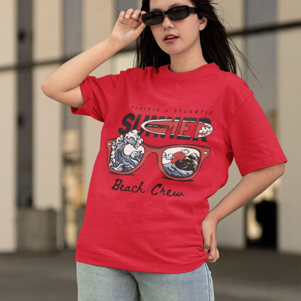 Summer Vibes Oversized Drop Shoulder Tee – Pacific x Atlantic Beach Crew Graphic T-Shirt